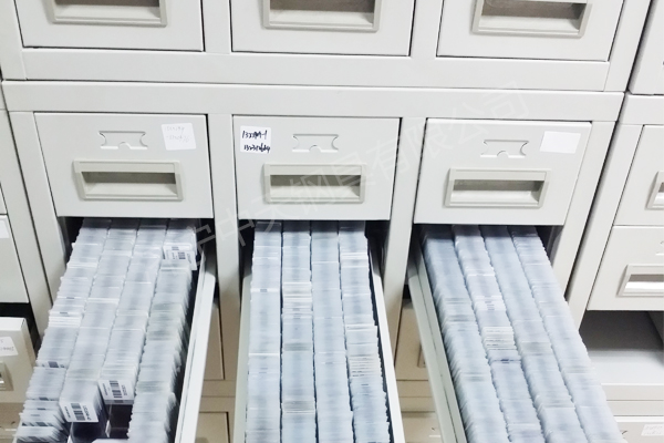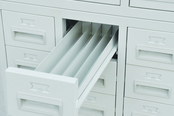 柜体采用0.8mm宝钢冷轧钢板,抽屉自动归位功能,每套4组合,每组合9个抽屉,共36个抽屉,约放切片55000片。柜体经防锈处理,静电喷塑工艺,整体美观大方。最新利用槽式滑轮,起始点配高强度滑轮,抽屉推拉顺畅,同时防止抽屉拉出来过长造成意外跌落。另配高弹性减震垫,可使抽屉关闭时减轻与柜体的碰撞,同时使噪音减少至最低限度。
